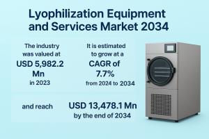 WILMINGTON, DE, UNITED STATES, October 7, 2025 /EINPresswire.com/ -- The global lyophilization equipment and services market is experiencing robust expansion, driven by the rising demand for stable pharmaceutical and biological products, increased focus on extended shelf life of sensitive materials, and technological innovations in freeze-drying processes. The industry was valued at US$ 5,982.2 Mn in 2023 and is estimated to grow at a CAGR of 7.7% from 2024 to 2034, surpassing US$ 13,478.1 Mn by the end of 2034.— Transparency Market Research