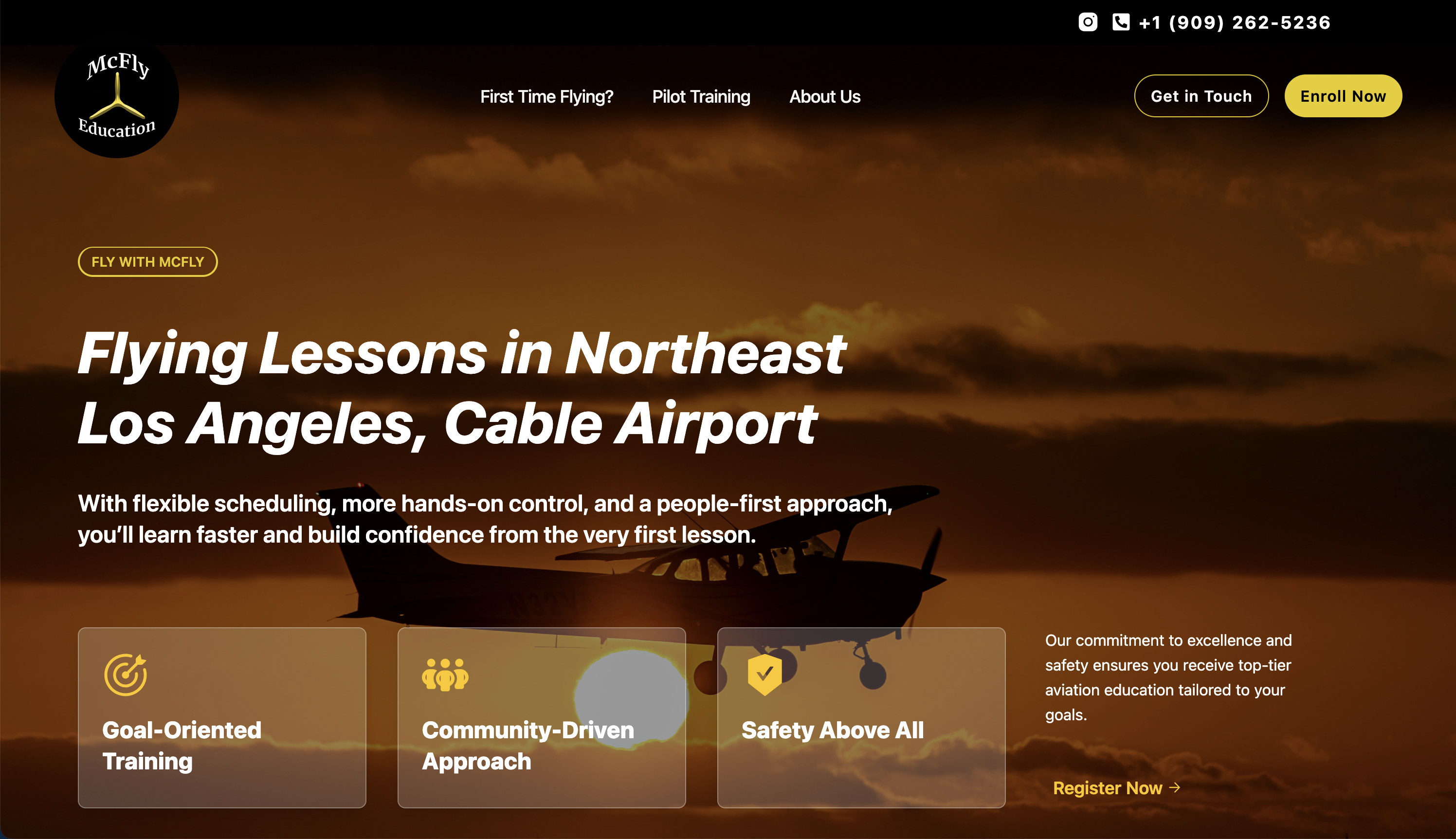 -Google My Business Optimization: McFly Education's Google Business Profile is being optimized to increase visibility in Google Maps and local search results. This service ensures the flight school appears prominently when prospective students search for flight training in Upland, Cable Airport, or surrounding communities.