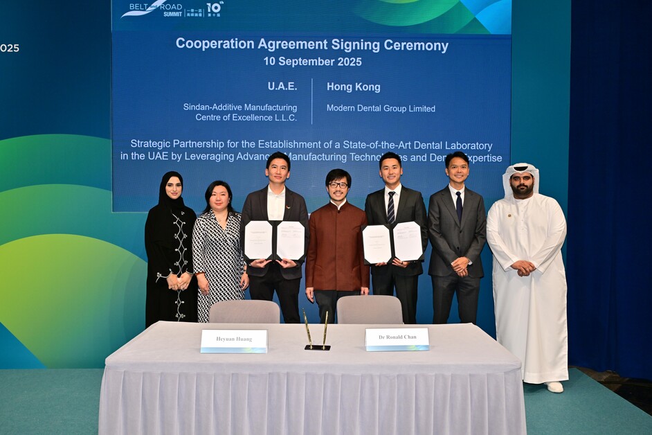 PARIS, FRANCE, October 22, 2025 /EINPresswire.com/ -- Sindan Dental, the healthcare division of Sindan and the UAE’s national champion in additive manufacturing, has signed a strategic Memorandum of Understanding (MoU) with Modern Dental Group (MDG) (HKEX: 03600), a global leader in dental prosthetics. The agreement, signed at the 10th Belt and Road Summit in Hong Kong, marking a major milestone in advancing healthcare innovation from the UAE to the world.